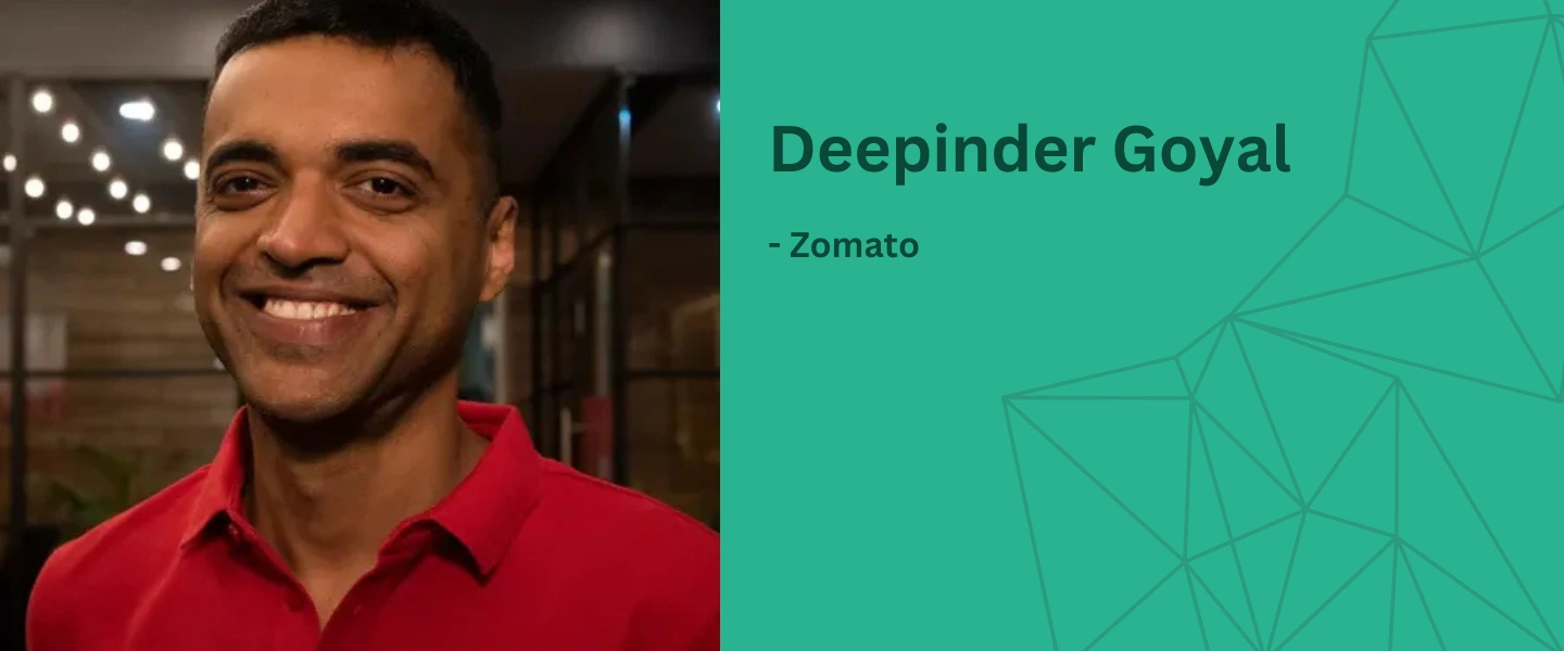 Deepinder Goyal is an Indian entrepreneur who built Zomato from a small startup into a billion-dollar company. He is known for his innovative thinking, perseverance, and ability to turn ideas into reality. He started Zomato in 2008, and has grown it into a global business present in over 25 countries. Under his leadership, Zomato became the first Indian food-tech unicorn and went public in 2021. Deepinder is now a prominent angel investor and mentor for early-stage startups, particularly in SaaS, food-tech, and sustainability sectors.